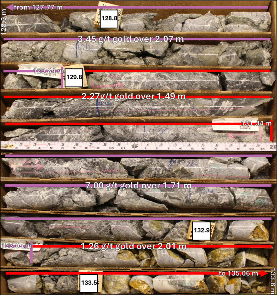 - Hole 25MN-047 returned, 10.36 g/t gold over 1.68 m, including 22.49 g/t gold over 0.76 m, and 0.55 g/t gold over 14.45 m.